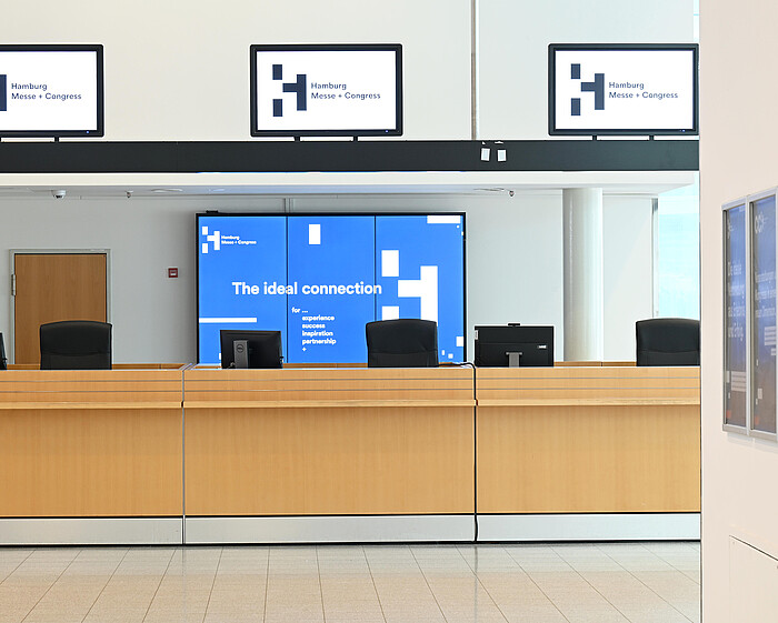 With digital signage, you can position your messages exactly where visitor traffic flows – at entrances, cash registers, foyers and central hubs throughout the exhibition grounds. Played multiple times and embedded in a curated, attention-grabbing environment, you can effectively reach your target groups.